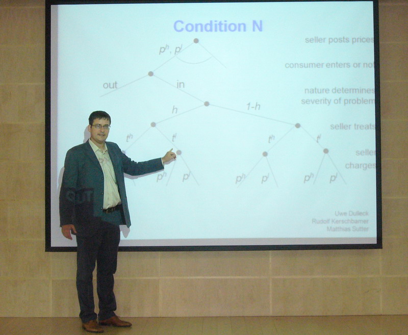 首先,Uwe dulleck教授对其学术研究进行了详细的报告;在提问环节,电影网站 师生就Uwe dulleck教授报告中的一些问题进行了提问,得到了Uwe dulleck教授较为全面的回答;最后,徐院长对Uwe dulleck教授的学术报告进行了点评,指出Uwe dulleck教授的报告为电影网站 师生更好的进行经济学研究提供了新的方法和思路。