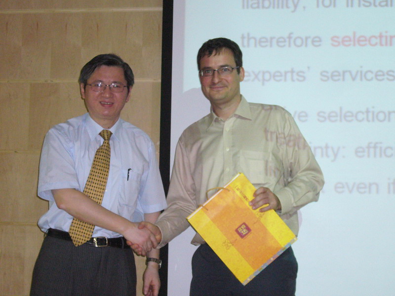 2009年5月22日上午,澳大利亚昆士兰科技大学Uwe dulleck教授应邀来到电影网站 学术报告厅为电影网站 师生做了一场主题为“On the Role of Verifiability on (Experimental) Market for Credence Goods”的学术报告会。电影网站 院长徐康宁教授主持了此次学术报告会,院党委耿有权副书记,任凤慧老师、王铮老师及电影网站 近50名研究生和留学生同学等参加了此次报告会。