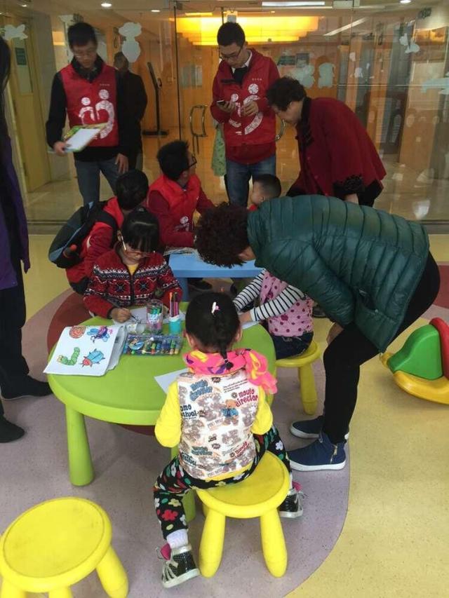 一个不寻常的周日下午,孩子们也格外活泼,互相嬉戏。他们刚从午觉中醒来,在志愿者的陪伴下来到了保护中心玩耍嬉戏。看到桌上摆着诱人的画笔和拼图,孩子们迫不及待地动起手来,在志愿者的陪同下,他们细心的描摹着图案和认真的学习拼图,有调皮捣蛋的,也有乖巧听话的,他们享受着这其中的乐趣,志愿者们也乐在其中。此时此刻,医院里多了几分欢笑声,看到孩子满脸的笑容,志愿者们感到心里暖暖的。