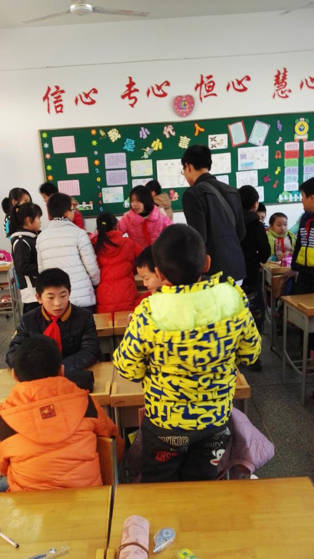 当志愿者们来到五年级(1)和(2)班时,班内的同学们激动不已,纷纷表示欢迎。随后,志愿者们按照分配有序的进入班级。在与老师进行简单的交流后,志愿者们按照老师的建议对同学分组,并把带来的手工课道具分给同学,开始教课。志愿者们与同学们玩在一起,学在一起,笑在一起,同时也一起感受着支教与被教的乐趣。志愿者们不停地与同学进行互动,为同学们进行示范,指导同学们完成一个又一个作品。这其中,当同学们发生小摩擦时,志愿者们也用耐心和笑容缓解小朋友之间的不愉快。