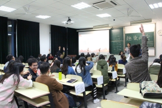 最后一个环节是“两会知识分秒抢答“。本环节设立30道有关两会要点的选择题,希望通过抢答的形式加深同学印象,掌握两会要点。为了能够抢到问题,同学们在听到主持人的口令后,齐刷刷的将手举高,不少同学站起来举手以吸引主持人的注意力,大家积极热烈的表现将活动氛围推向高潮。