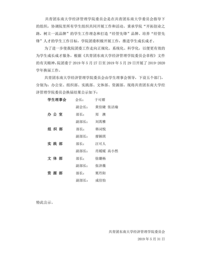 公示:共青团电影网站 委员会2019-2020学年换届结果通知