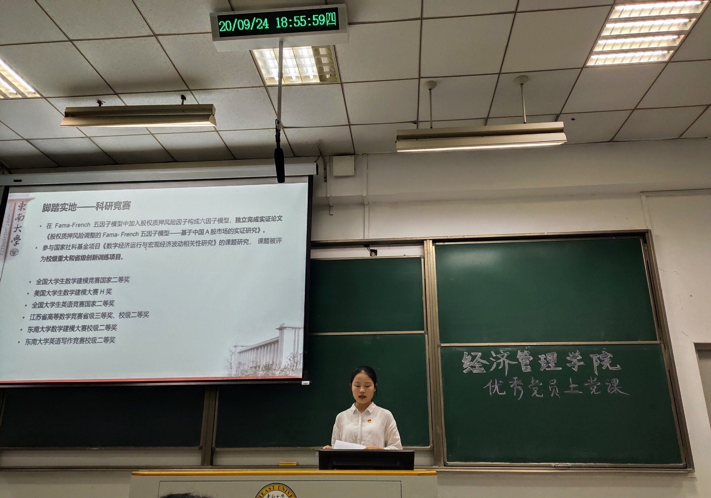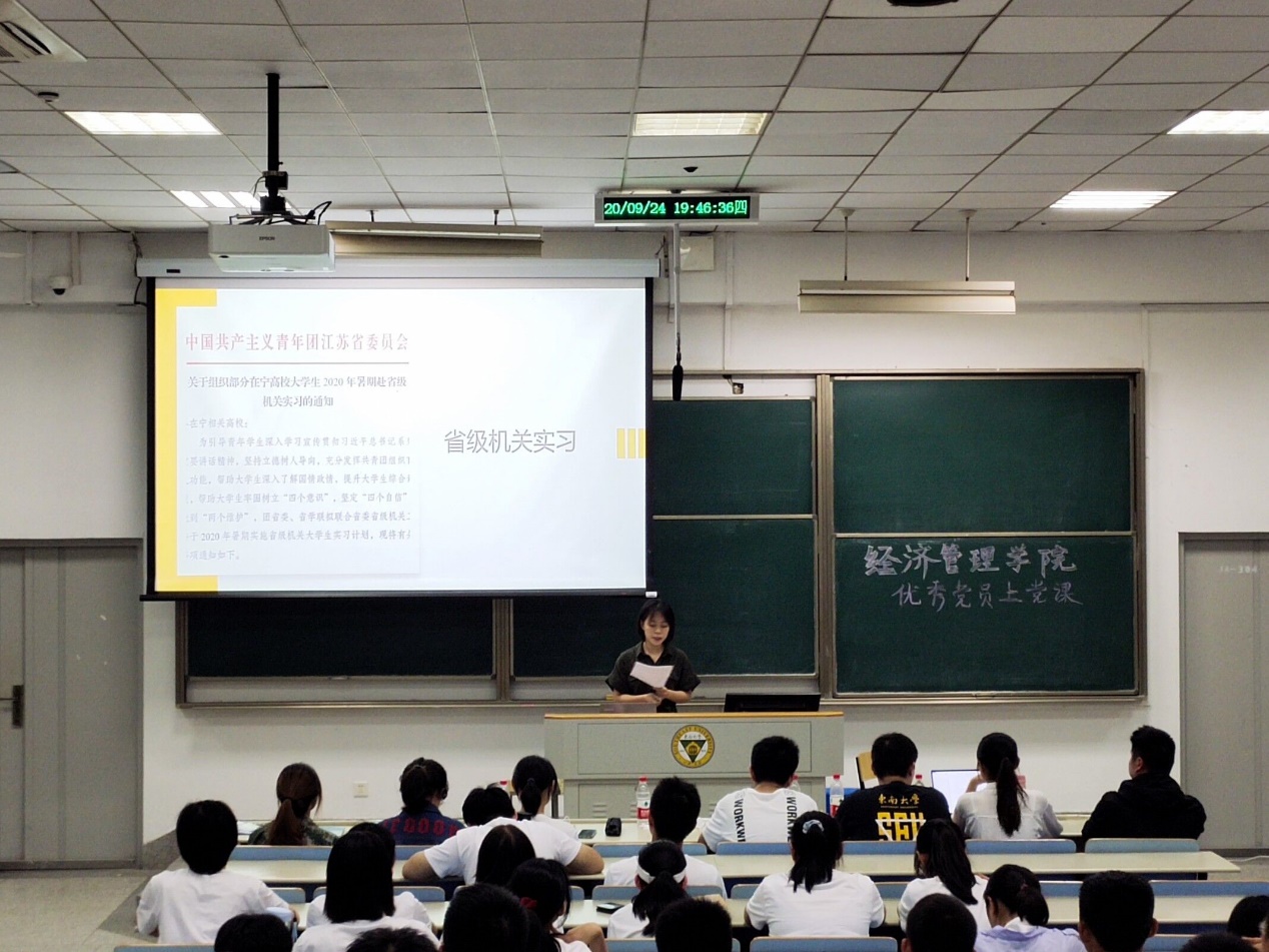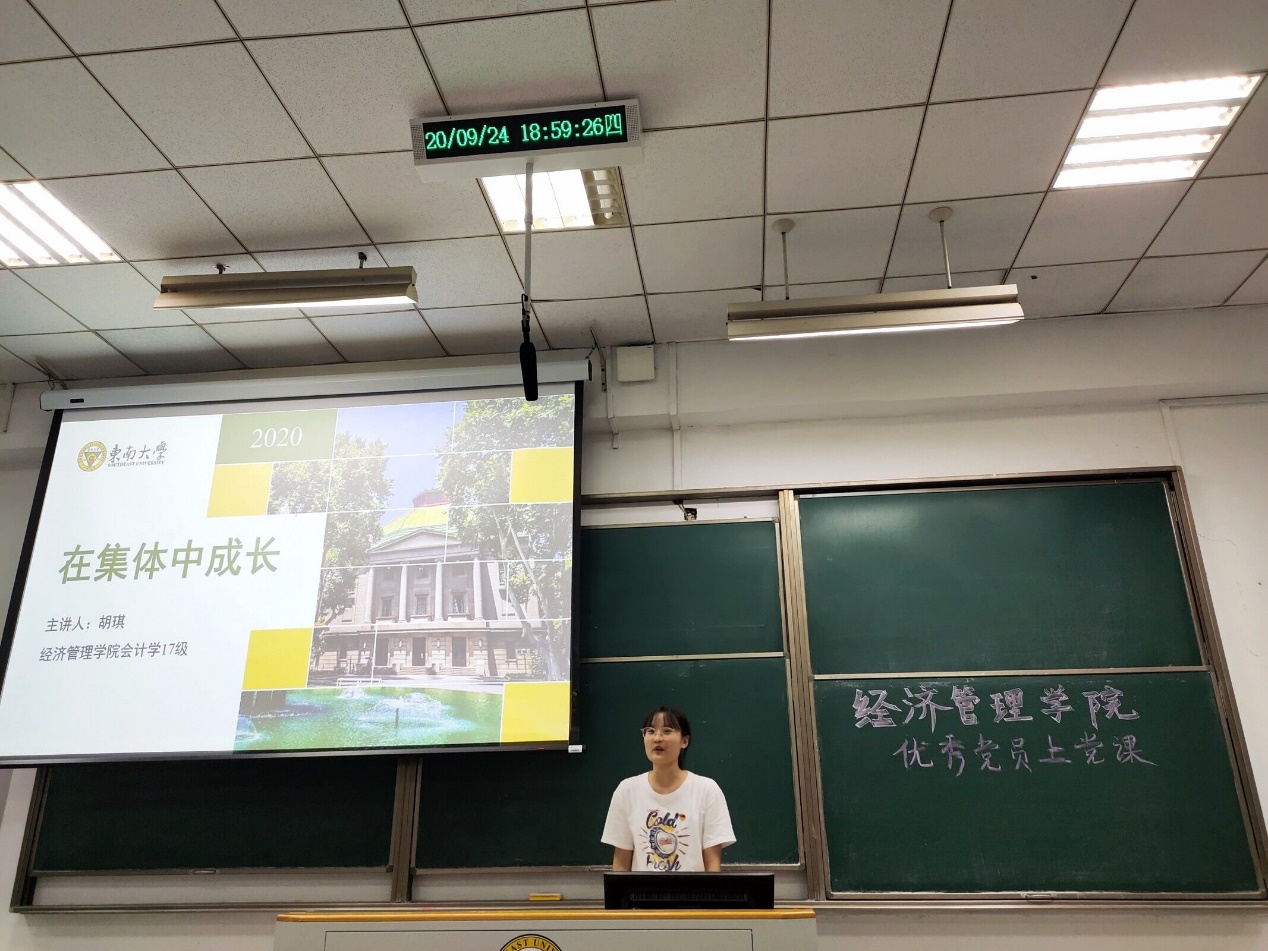 秋高气爽,蝉鸣蛙叫,伴随着“秋天第一杯奶茶”的梗,新生们的军训之旅也渐近尾声。2020年9月24日晚,在暖场视频《初心》播放结束后,“电影网站 优秀学生党员为2020级新生上党团课”活动在美丽的九龙湖畔教四-304教室里隆重举行。