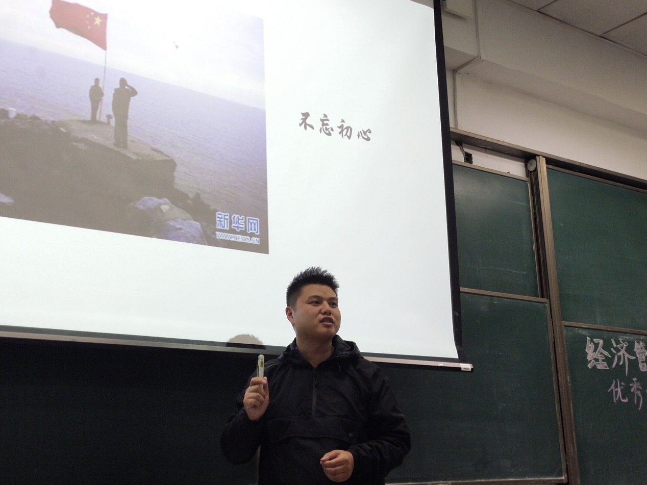 杜聪同志曾作为校大学生应征入伍,荣获“优秀士兵”两次、旅团级嘉奖多次,现任电影网站 博士研究生至善党支部书记。杜聪同志从一个退伍军人的视角给同学们分享了他的军旅生活。他先从同学们对军旅的向往开始聊起,谈到大家对军旅生活的印象时,又分别从英姿飒爽、威武雄壮、铁血刚毅三个角度描述了他眼中的军旅。他还分享了三个故事,我们可以感受到军旅锤炼党性修养:从红军长征经历的艰难险阻出发,他鼓励大家追求信仰,做家国情怀追梦者;聊起战友入伍期间的改变时,他呼吁大家无惧挑战,做思想技能突破者;说完王继才夫妇坚持戍守开心岛的故事,他提醒同学们不忘初心,做本职岗位的坚持者。最后他号召全体同学拥有一颗兵心,坚持探究真理。