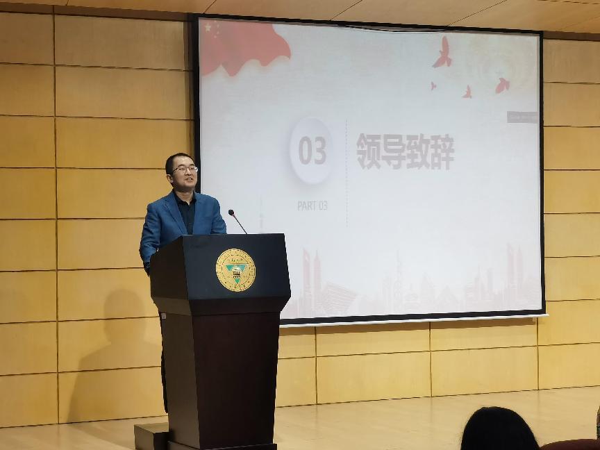 首先,本次活动有幸邀请到何熠书记莅临现场并为该仪式致辞。在讲话中,何书记以中共中央二十大召开为背景,提出“听一堂好课”是最美好的享受,对学生人生可能产生极大的帮助,要让“课比天大,生为首位”深入人心,希望同学们在电影网站 学习生活期间,有高追求、有大情怀、有宽视野、有好思想、有严规矩,在最好的时代,做最好的学生。