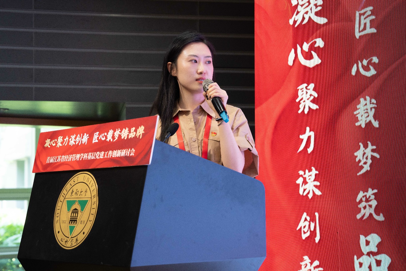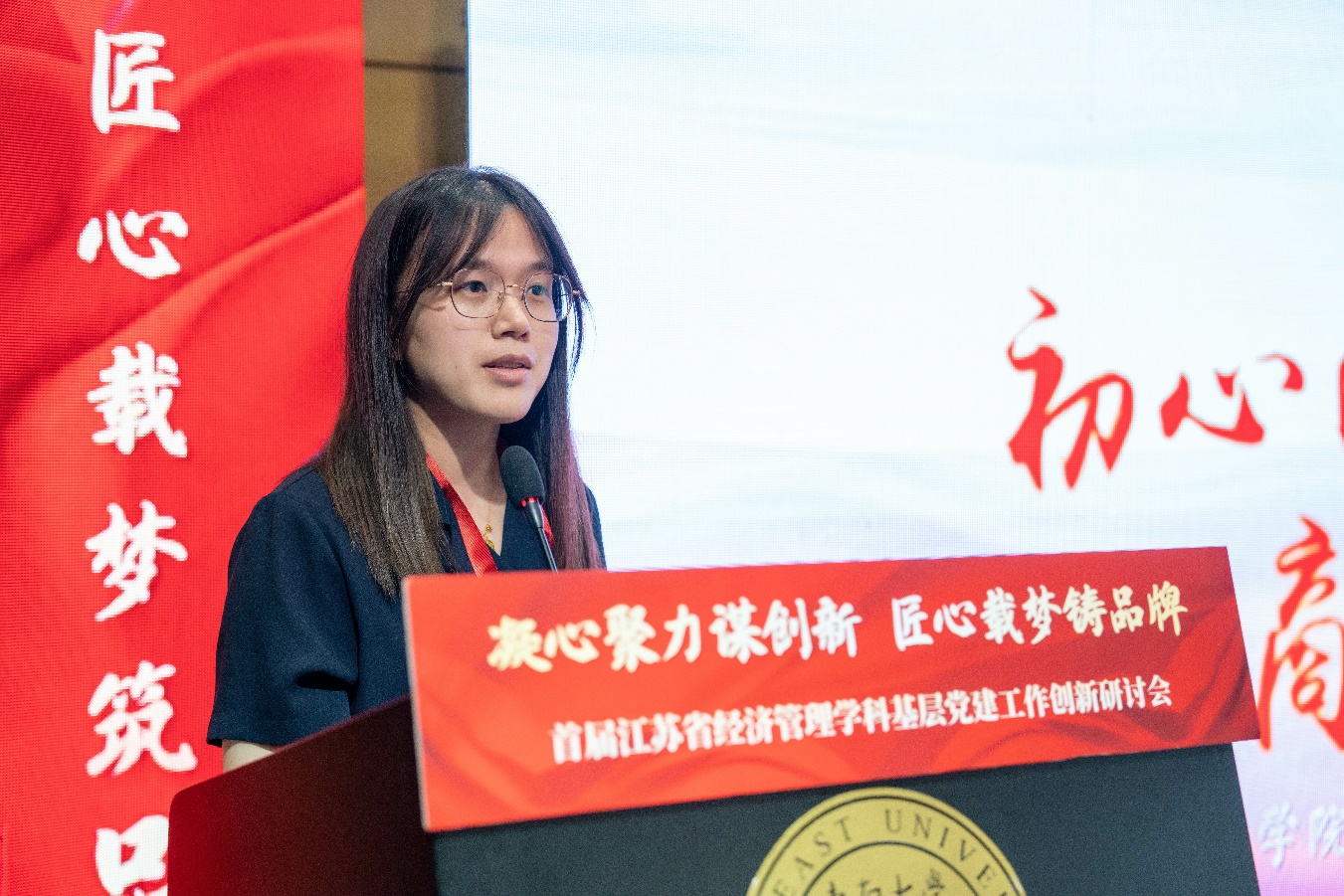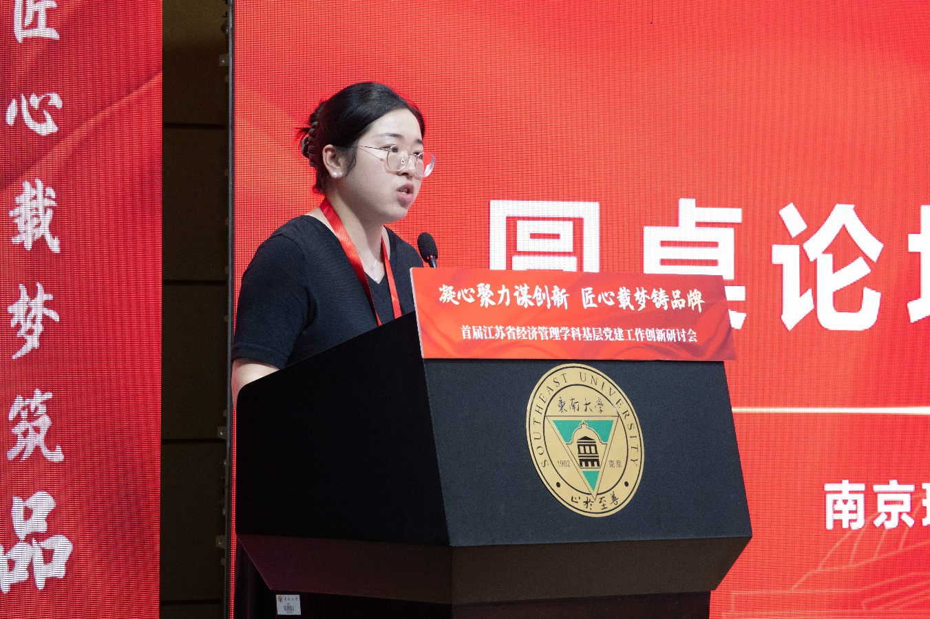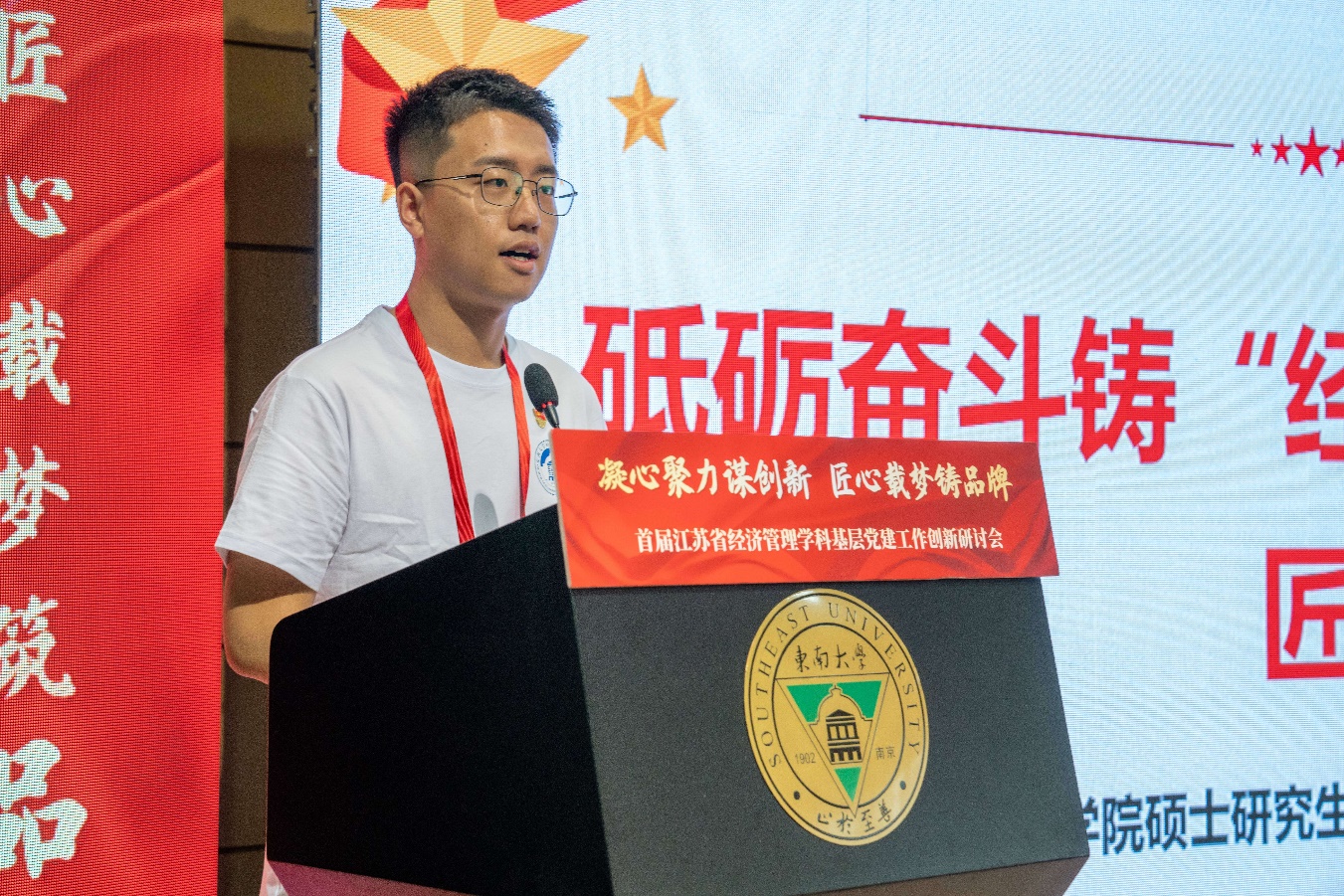 在主旨报告环节,教工党支部代表南京林业大学朱海星以“‘助力乡村振兴与实践育人相结合’的支部建设”、本科生党支部代表河海大学王晓莹以“初心向党小红‘贸’ 共‘商’未来砥砺行”、硕士生党支部代表电影网站 黄文泽以“砥砺奋斗铸‘经’彩 匠心凝聚谱新篇”、博士生党支部代表南京大学裴益莹以“守正创新担使命 踔厉奋发谱新篇——以党建引领管理学科发展”为题,分别作了大会主旨报告,引发了与会代表的深入思考和交流。
