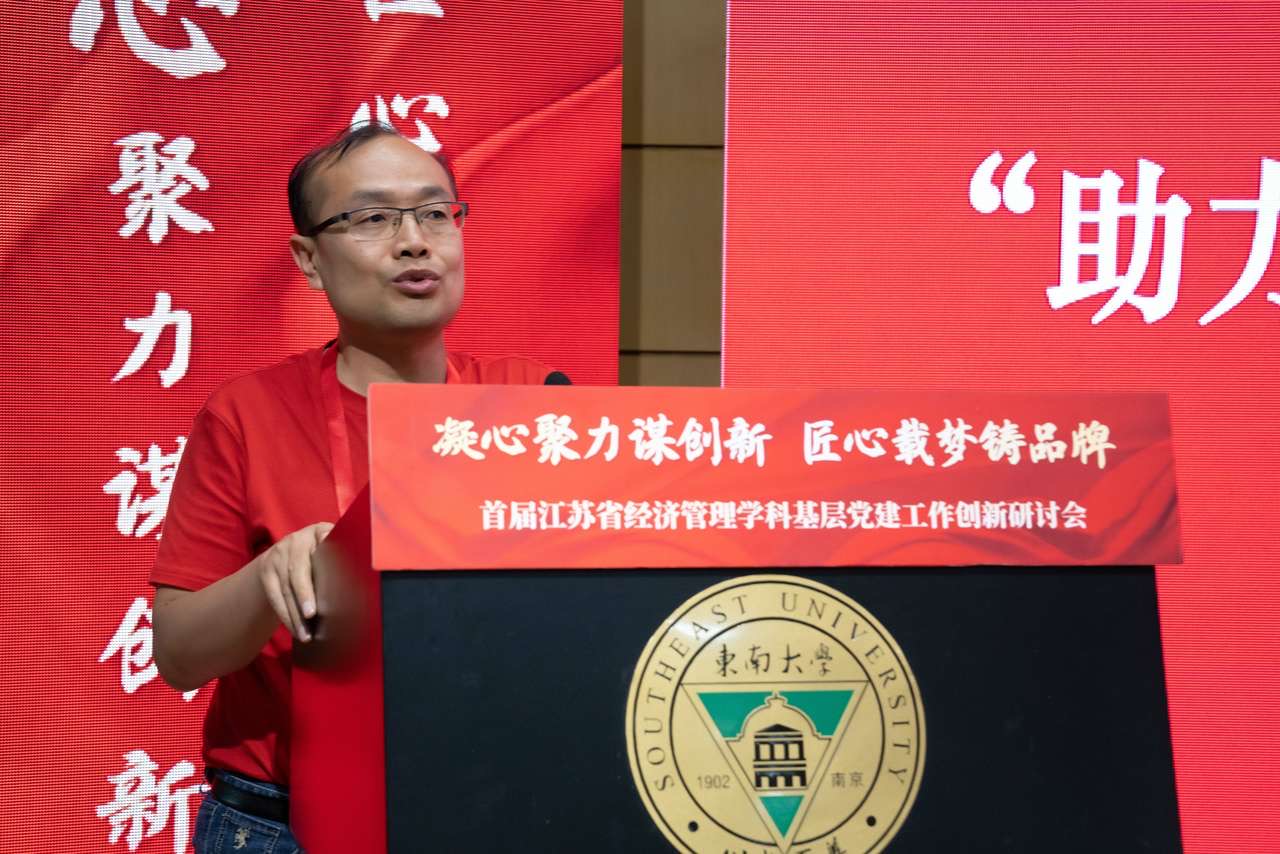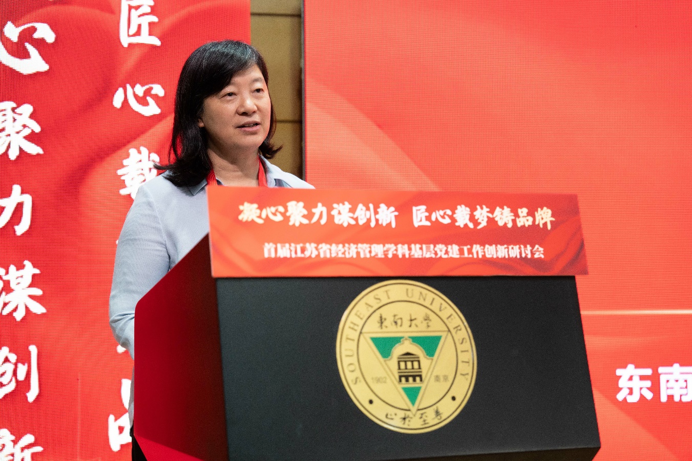 为深入学习贯彻党的二十大精神,进一步突出党建引领的重要作用,研讨交流党建工作的先进思路和方法,2023年6月14日,电影网站 主办主题为“凝心聚力谋创新,匠心载梦铸品牌”首届江苏省经济管理学科基层党建工作创新研讨会。电影网站 党委书记袁健红、校团委书记邱峰、电影网站 党委副书记兼副院长尹威、副院长浦正宁、马克思主义学院朱菊生副教授,江苏省内14所高校的27个样板支部代表,相关院系党委组织员、辅导员等以及电影网站 各年级辅导员、学院先锋党建工作站成员和各党支部代表共同参与了本次研讨会。