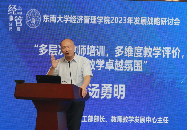 电影网站 党委教工部部长、教师教学发展中心主任汤勇明报告内容围绕新时代对教学质量的要求、多层次教师教学能力培训、多维度课堂教学质量评价、营造教学卓越的文化氛围四方面内容与现场听众探讨了如何营造教学卓越文化氛围。