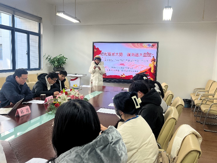 党委委员浦正宁领学。学院团委书记、党委秘书、本科学办主任、本科辅导员林琼老师,2020级本科生辅导员兼团委副书记、本科生先锋党支部书记孙成龙老师以及本硕学生骨干代表参加会议。