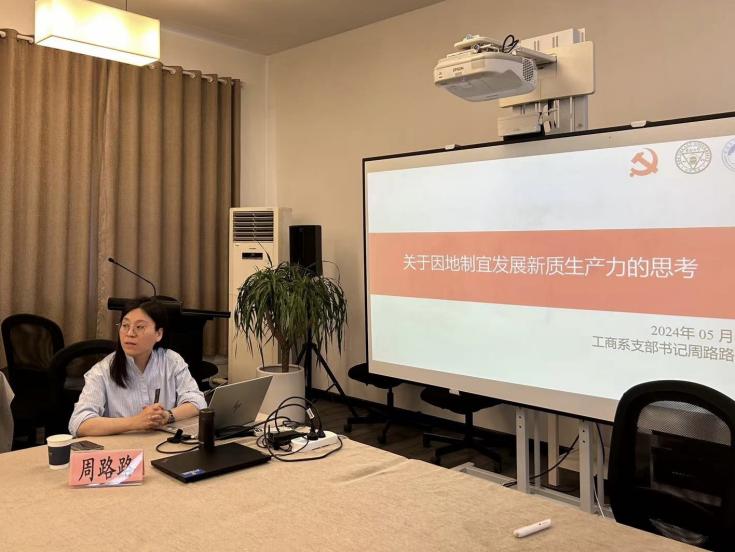 于经管楼B203举行“头雁领航,行而不辍”重点理论学习(第五期)会议。本期主题为“因地制宜增效能,创新驱动谱新篇”。会议由工商管理系党支部书记周路路老师领学,本科143-144党支部和硕士研究生工商管理至善党支部党员参加会议。