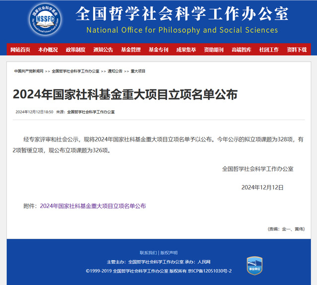 2024年12月12日,全国哲学社会科学工作办公室公布了2024年国家社科基金重大项目立项名单,经济管理学院刘晓星教授作为首席专家主持申报的面向大国博弈的国家金融安全体系和能力现代化建设研究”获批立项,项目批准号为24&ZD117