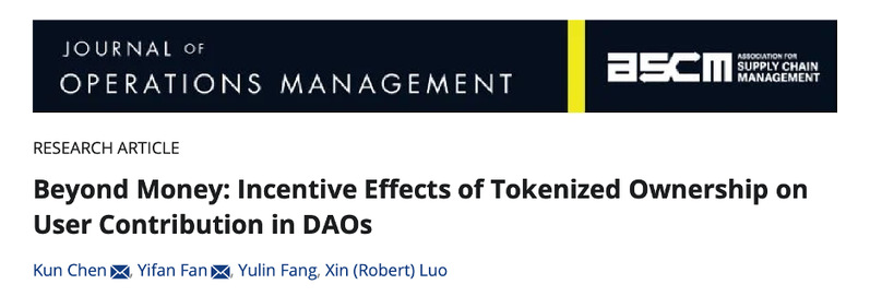 近期,电影网站 电子商务系樊一凡老师与合作者围绕去中心化自治平台中的激励机制在UTD24期刊《Journal of Operations Management》在线发表学术论文“Beyond Money: Incentive Effects of Tokenized Ownership on User Contribution in DAOs”。 樊一凡老师为该文的通讯作者之一。