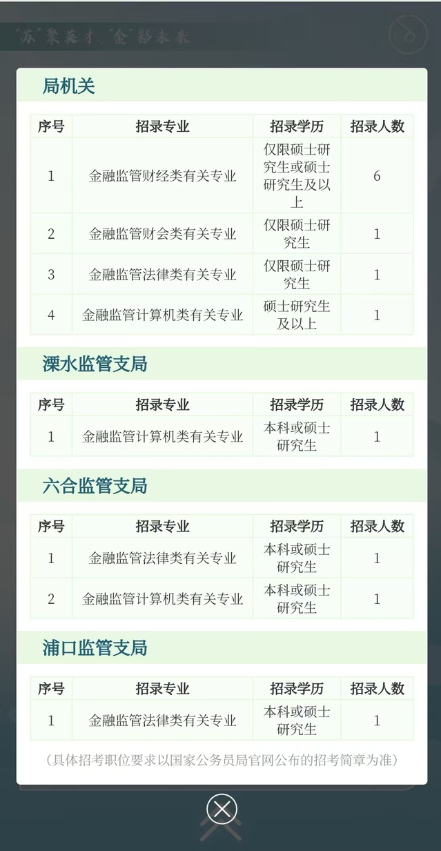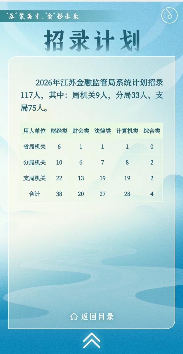 国家金融监督管理总局江苏监管局系统2026年度公务员招录