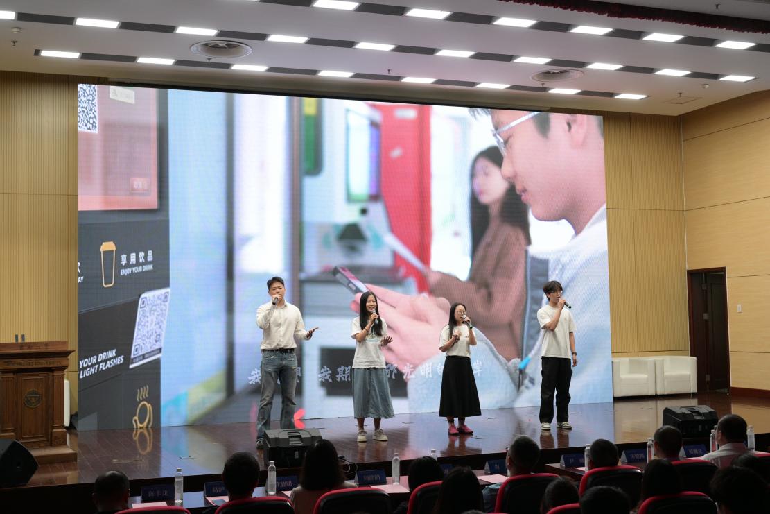 歌曲《追梦经管人》为2025级新生见面会注入热血力量,伴随旋律攀升至高潮,研究生周家葆、刘阳光和本科生申则尧、张皓玥的深情演唱,深深触动在场经管人的心。这份独属于经管人的骄傲与责任,正等待2025级新生前来续写。