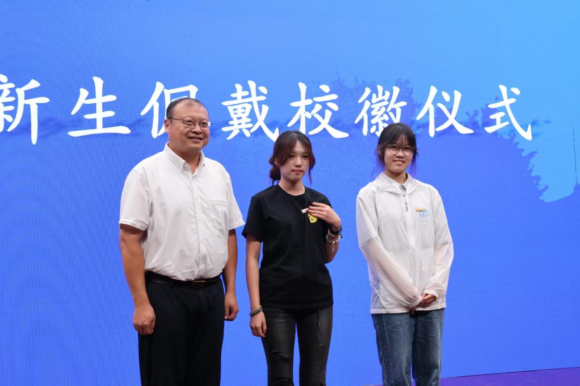 发言结束后,电影网站 党委书记宋健刚为新生代表佩戴校徽,全体新生进行佩戴校徽仪式。