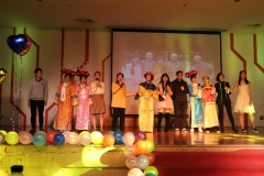 英俊的男主持和温婉的女主持人缓缓移步舞台,灯关亮起,一一介绍了莅临晚会的嘉宾之后,晚会在一片热烈的掌声中正式开始。管工班的合奏尤克里里,All of me传达出恋爱中的美好,让大家为相遇而感到庆幸和期待;金融班结合提炼了电影网站 两个月的研究生生活,生动幽默的三句半逗起大家的阵阵笑声,现场轻松而活跃;管工班和会计班唱起了情歌,管工班的王殿元和罗一鸣对歌曲的完美演绎在现场圈粉无数,男女深情对唱珊瑚海也引起了大家对爱情的共鸣;会计班和金融办的同学的《春到湘江》将晚会带入了另一个古朴文艺的氛围,竹笛声声,书法字画,全场带着惊羡和赞叹,沉醉在这美丽的湘西生活;应用经济学班的同学就为我们带来了歌剧童年,婉转的越南语和婉约越南奥黛,如同童年一般,美好静好;物流班的合唱就传达出每个人对于相逢的喜悦,同心共勉,九龙湖,同窗的你,是我的小幸运;应用经济学班与金融班的这首《青春修炼手册》,活力四射,更有可爱的熊本送福利,欢乐渲染了整个会场;校研会文化部带来的傣族舞《朵儿朵》更是美轮美奂。