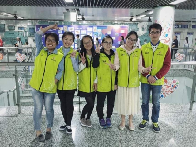 在书屋的志愿者端正地坐在桌前,温柔的笑容似阳光,照亮了每一位经过的路人,等待着匆匆的路人停下脚步,捐出自己不再需要的书籍。进站口的志愿者负责监督乘客不要带气球等危险品进站,也帮助乘客们打卡问路。帮助的同时也目睹了一次又一次的分离,“路上小心”“到了记得打电话”……叮嘱关切之声不断在耳旁响起,有轻松,有愉快,更有不舍与哭泣。志愿者们都努力去微笑,尽量去帮助,希望能够用微笑去调节乘客低落的心情,扫去乘客们心中的不快。站在售票机和出站口的志愿者每当看见有乘客需要帮助时,总会热心地走上前帮助,帮忙买一下票,指一下路,刷一下卡……虽然我们能做的事看似细微,但我们都用百分百的努力去做,我们相信由心而生的关爱是最甜的。时间就在一班又一班的轮换中逝去,三个小组顺利完成了三个半小时的志愿服务。
