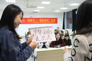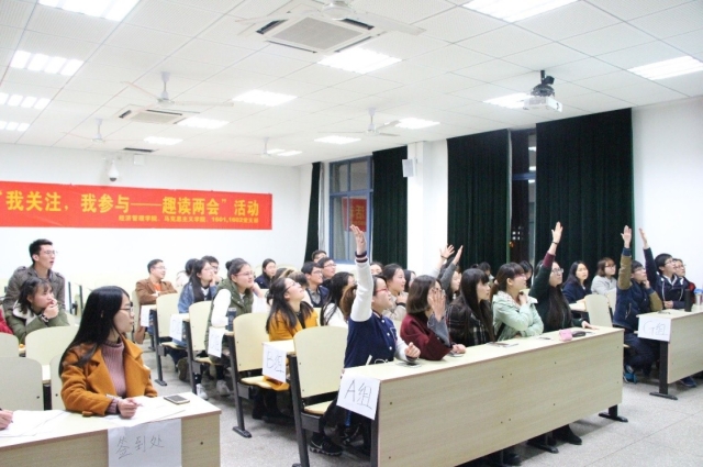 1601、1602党支部、马克思主义学院研究生党支部协办的“趣读两会”活动在纪忠楼Y-306成功举办。两个学院的同学都对本次活动表现出极大的热情,活动氛围十分热烈。