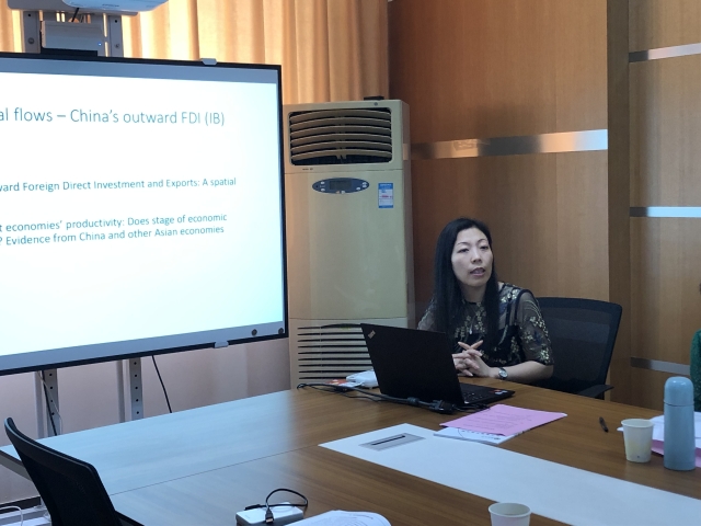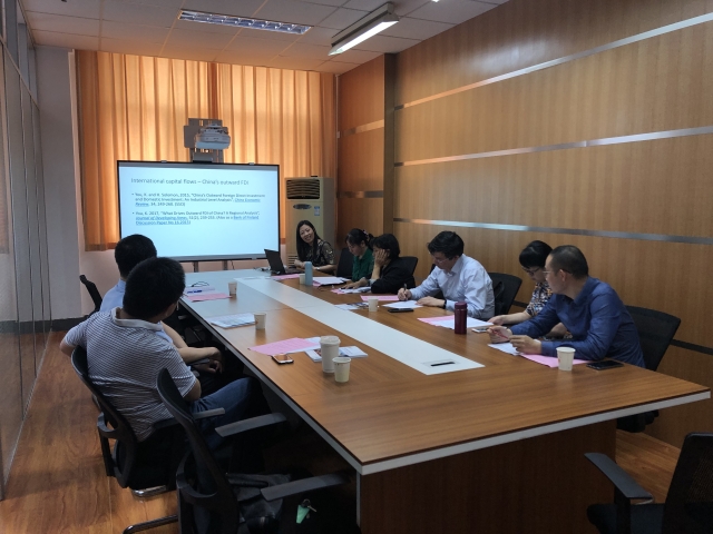 最后,海外青年学者尤博士与其相关的应用经济学学科的系主任、党支部书记,展开了深入的交流和讨论。大家在一片欢乐祥和的气氛中,结合共同研究的学科,进行了坦诚和热烈的交流,并期待后续有进一步的合作机会。