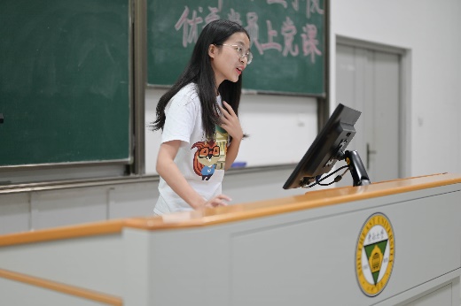 金融工程专业2017级本科生吴丹妮发表了题为《朋辈与党》的讲演。她讲述了自己在两位获得电影网站 “最具影响力毕业生”称号的优秀学长学姐的影响下度过迷茫期的故事,通过朋辈的启发明白自己想要什么,明白入党的初心,递交入党申请书,进而严格要求自己,在学习生活等多方面发生积极变化、快速成长,作为团支部书记带领团支部赢得甲级团支部等多项荣誉称号。她鼓励新生们以“入党”的情怀挺起中国人的脊梁,在红色道路上永不止步。