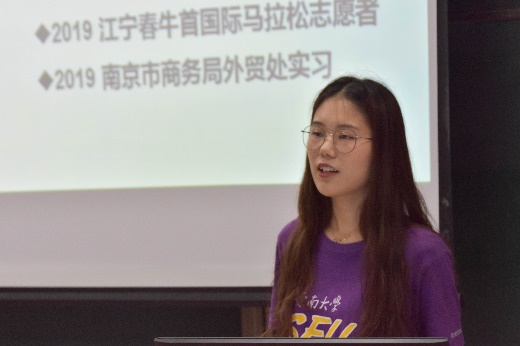 金融工程专业2017级本科生钱诗懿首先发表了题为《更好的祖国,更好的青春》的讲演,她以自己身为电影网站 国旗护卫队一员受国旗精神感召入党,勤奋学习,积极实践,通过参观红色遗址、参与社团和志愿工作再到南京市商务局实习一路成长的亲身经历为新生阐明了当代青年大学生“不忘初心,牢记使命”的责任与担当,希望新生努力认清自己,明确人生目标,趁着年轻做一些让自己在70岁回想起来还是很热血沸腾的事情,让“经世济民”成为每一个经管人永远的梦想和使命。
