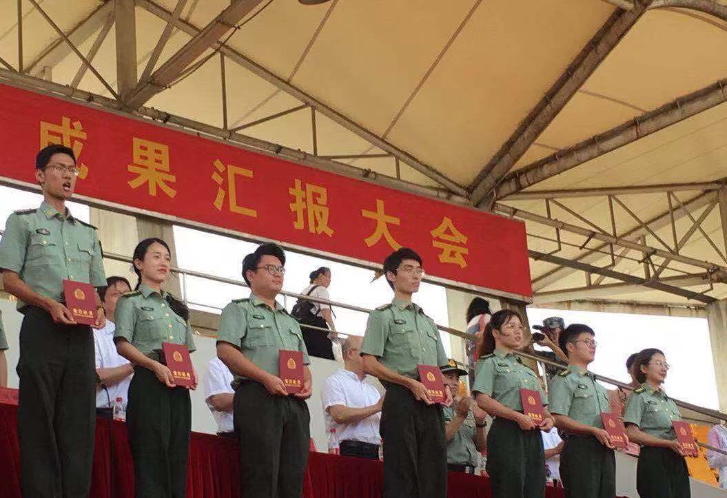 很高兴看到同学们顶着烈日、冒着风雨,严守纪律,坚持训练,取得好的成绩,圆满完成军训任务,上好了大学第一课。十分期待大家将这段宝贵的经历变为人生的财富,在今后的大学生活、人生道路上走得更好,收获更多。