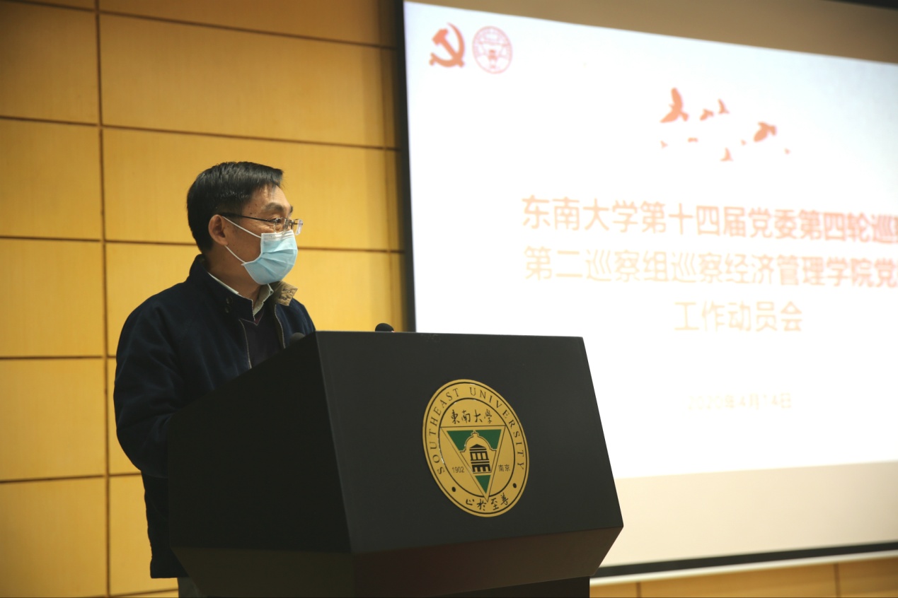 沟通会结束后,电影网站 在经管楼报告厅举行巡察工作动员大会。常务副校长王保平,第二巡察组组长汤勇明,副组长李黎藜,党委组织部副部长潘勇涛,党委巡察办副主任李瑛以及巡察组其他成员,学院党政领导班子成员、党委委员、党支部书记、各系主任、学术委员会主任、办公室主任、教代会主任、团委书记、工会主席、民主党派代表、党委秘书、学院科级以上干部、教师代表、离退休教职工代表等参加了会议,会议由校党委常委、院党委书记仲伟俊主持。