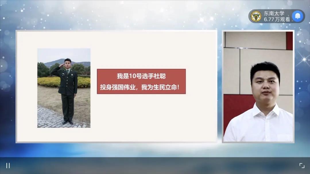 电影网站 的杜聪同学凭借其“勤于奋斗的军旅生涯、甘于奉献的支部工作、厚重激扬的家国情怀、气宇轩昂的精神风貌、神采奕奕的个人展示”最终斩获正·青年优秀研究生称号并且是电影网站 第一位获得该荣誉称号的学生。让我们为其送上最为热烈的祝贺!
