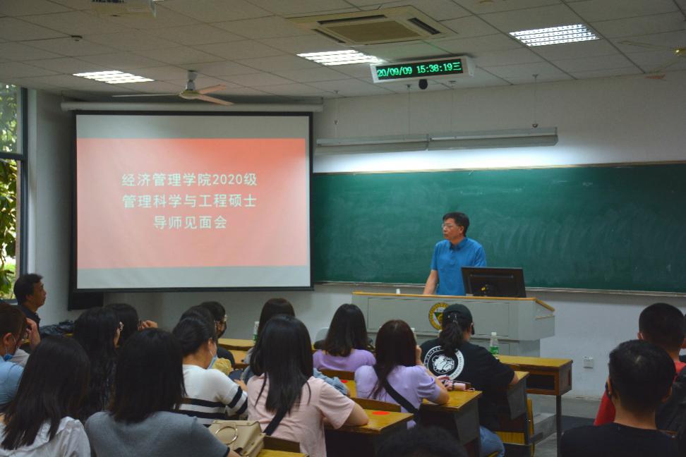 随后,管理科学与工程、国际贸易学、企业管理、技术经济及管理、资产评估、会计学、会计硕士、金融学、金融硕士、产业经济学、国民经济学、区域经济学、物流工程、物流工程与管理以及图书情报与档案管理等专业在分会场分别进行了分专业导师见面会。研究生导师们与新生见面,详细介绍了学科专业情况,指导同学们制定培养计划。