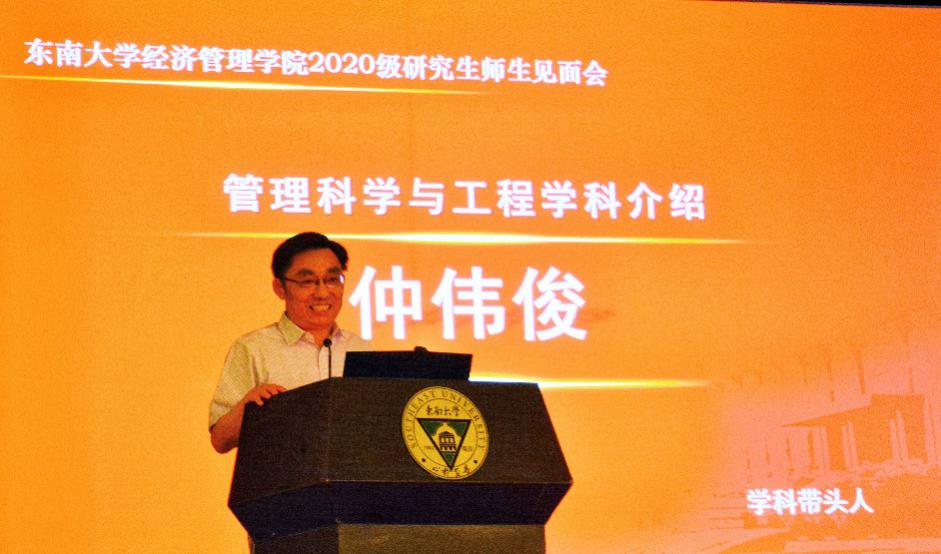 图3 仲伟俊教授介绍管理科学与工程学科情况
