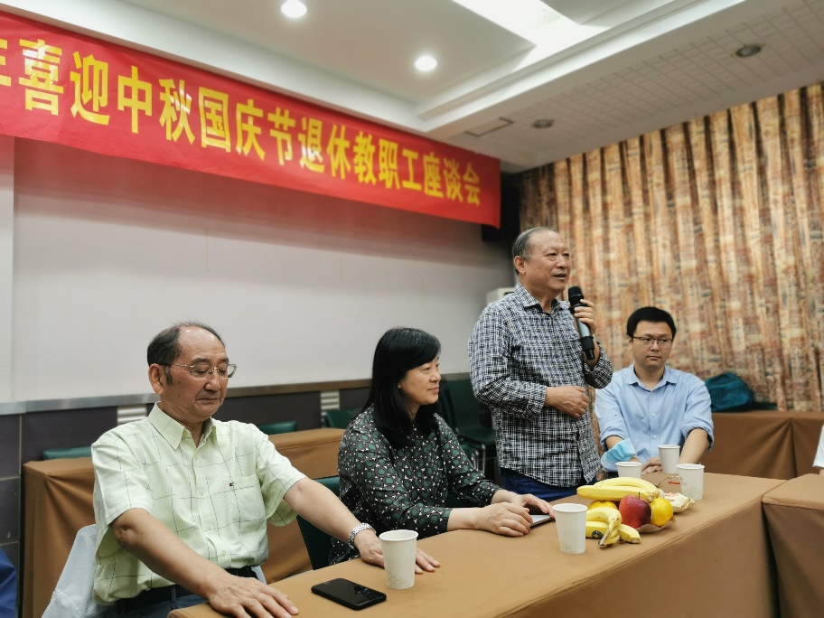 金秋九月,丹桂飘香,恰迎中秋国庆佳节,学院党委书记袁健红、副院长浦正宁等党政领导代表看望了学院退离休教职工,并与老同志们一起在榴园宾馆召开2020年迎中秋国庆座谈会。校退离休协会理事长程明山、名誉理事长龚乐年以及学院二十多位退离休老教师出席了此次座谈会。会议由校退协理事、院退离休党支部书记王文武主持。