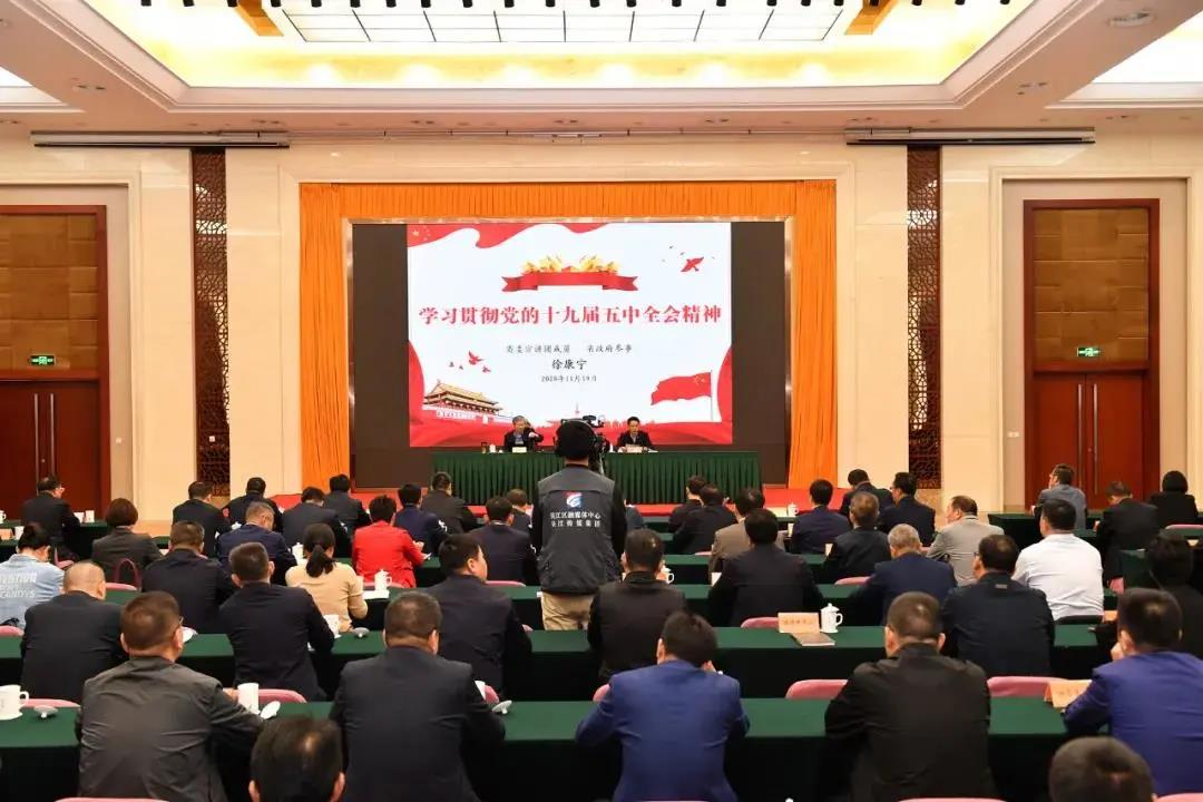 11月19日上午,学习贯彻党的十九届五中全会精神省委宣讲团苏州首场宣讲报告会在吴江举行。省委宣讲团成员、省政府参事、中国世界经济学会副会长徐康宁作宣讲报告,区委副书记钱斌主持报告会。