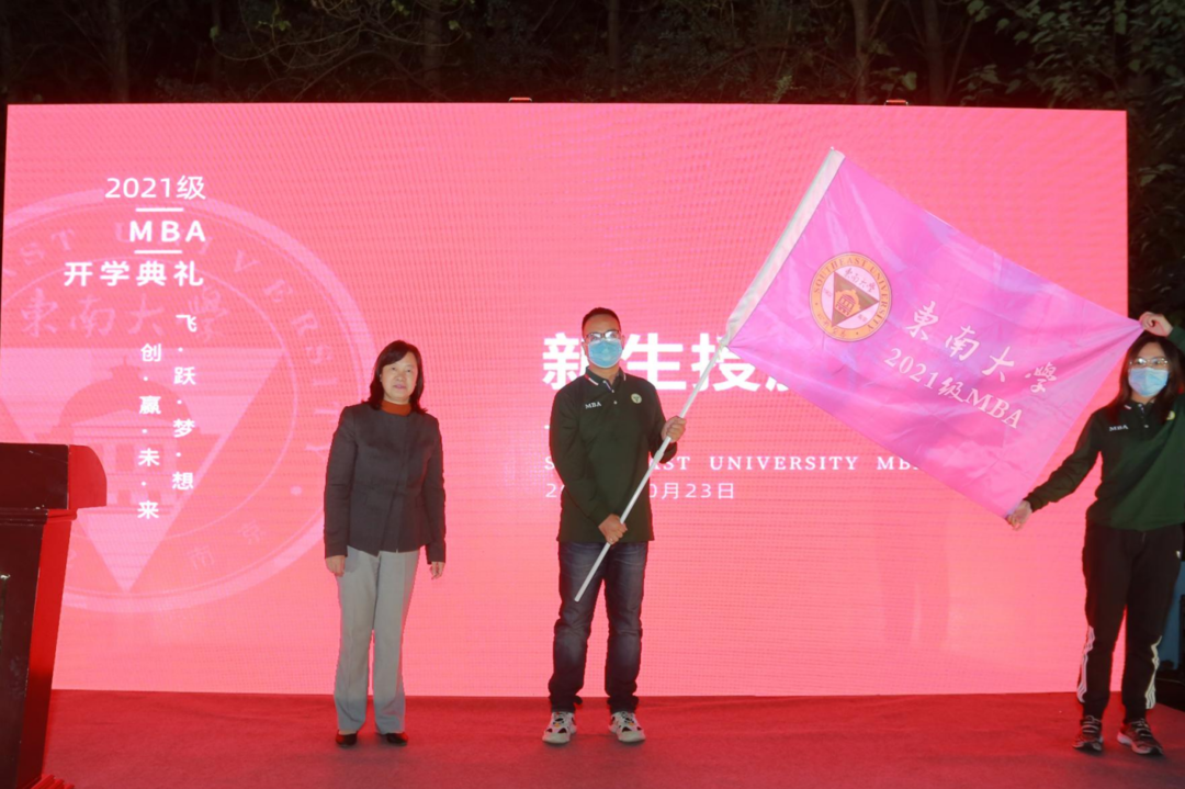 典礼最后,袁健红书记为2021级MBA新生代表授旗,标志着2021级MBA新同学三年的学习生活的正式起航!