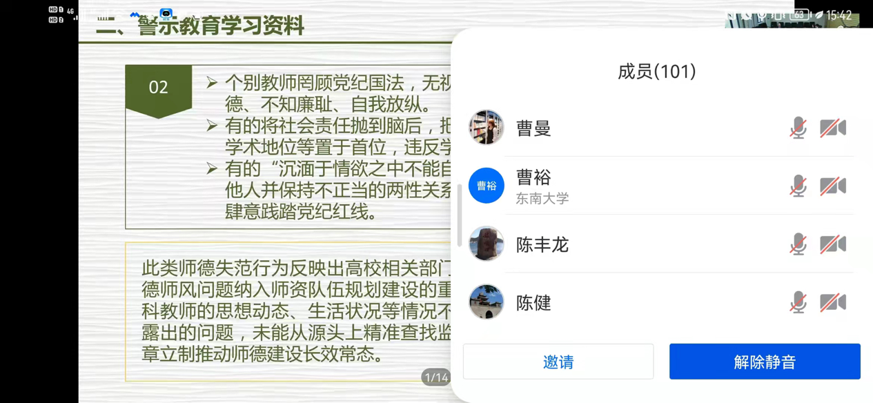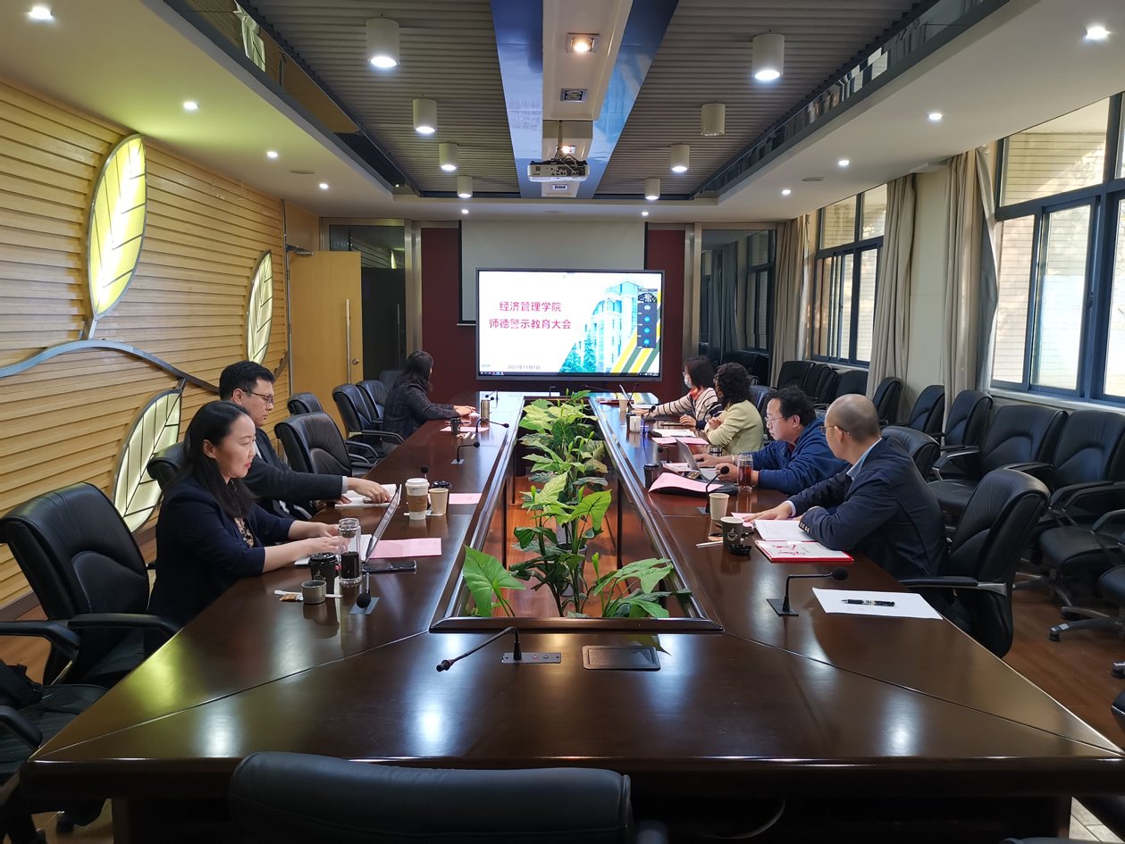 召开全院师德警示教育大会。本次大会采取线上线下结合的方式,学院全体党政领导班子、党委委员在九龙湖校区经管楼B201参会,其他老师线上参会。