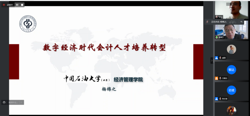 杨棉之教授就“智能时代工科院校会计人才培养变革”一题做了分享。方军雄教授在杨棉之教授的分享后表达了自己的感想。