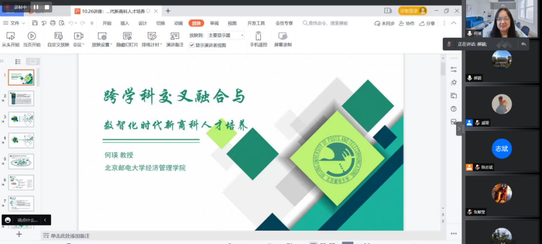 何瑛教授对“跨学科交叉融合与数智化时代新商科人才培养”问题做了精彩演讲。郝颖教授对何瑛教授的演讲做了点评。