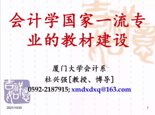 杜兴强教授以“会计学本科一流专业的教材建设”为题作了精彩报告。周绿林教授对杜兴强教授的演讲做出了精彩点评。
