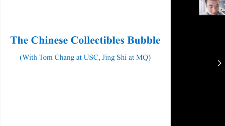 汪勇祥教授以“The Chinese Collectibles Bubble”为题做出了精彩报告。陈俊教授对汪教授的报告进行了点评。