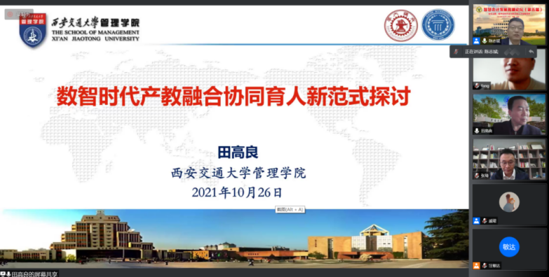 田高良教授以“数智时代产教融合协同育人新范式探讨”为主题进行了演讲。张琦教授对田高良教授的演讲做了点评。