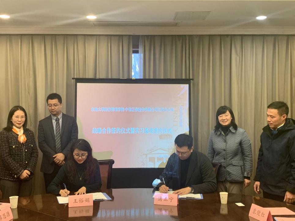 随后,中信证券江苏分公司王裕娟和电影网站 副院长浦正宁分别代表双方签署了合作协议。签署完成后,中信证券江苏分公司总经理解思源和电影网站 党委书记袁健红共同为“中信证券-电影网站 实习基地”揭牌,电影网站 -中信证券股份有限公司江苏分公司战略合作正式启动!