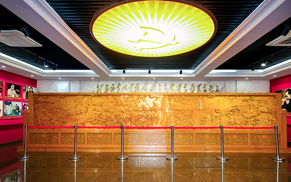 随着老师们迈入红军长征追踪馆,一块展现红军长征的黄杨木浮雕耸立正中,浮雕背后的墙壁上,镶嵌着毛泽东的《长征》一诗句:“山,快马加鞭未下鞍。惊回首,离天三尺三。” 红军长征中翻越了许多大山,路上的艰险不可胜言,但即使面对再大的困难,共产党人始终保持初心,不拿群众一针一线。