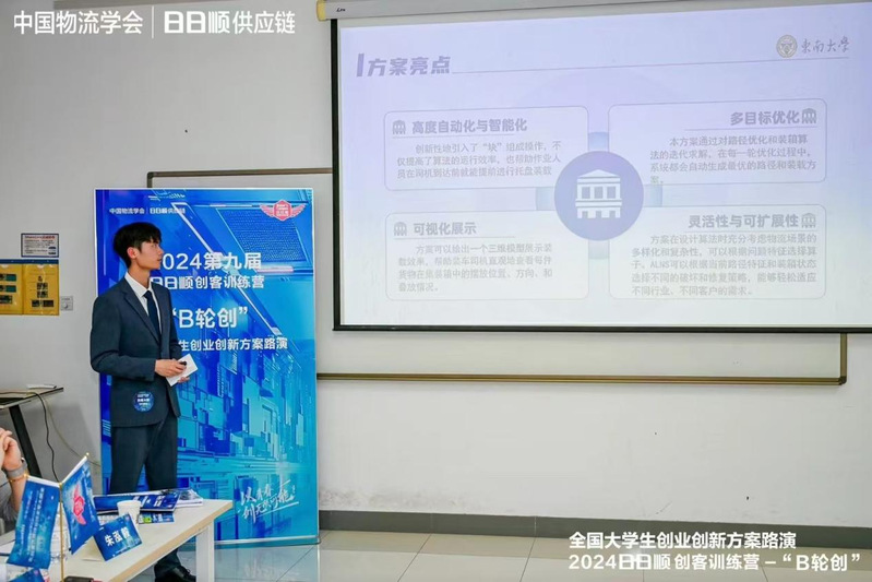 在“A轮研”环节中,团队选择了《基于多场景多车型的3D装载模型算法》这一挑战性课题。他们提出了“自适应大邻域搜索和模拟退火的混合算法”,旨在解决多车型考虑时间窗的车辆路径规划问题。在装箱部分,团队创新性地提出了基于托盘装载的“块生成”贪心算法,以牺牲最小装载率为代价,极大地提升了作业效率。通过装箱优化模型和运输调度优化模型的整合,团队为日日顺供应链的业务场景提供了一套完整的解决方案。