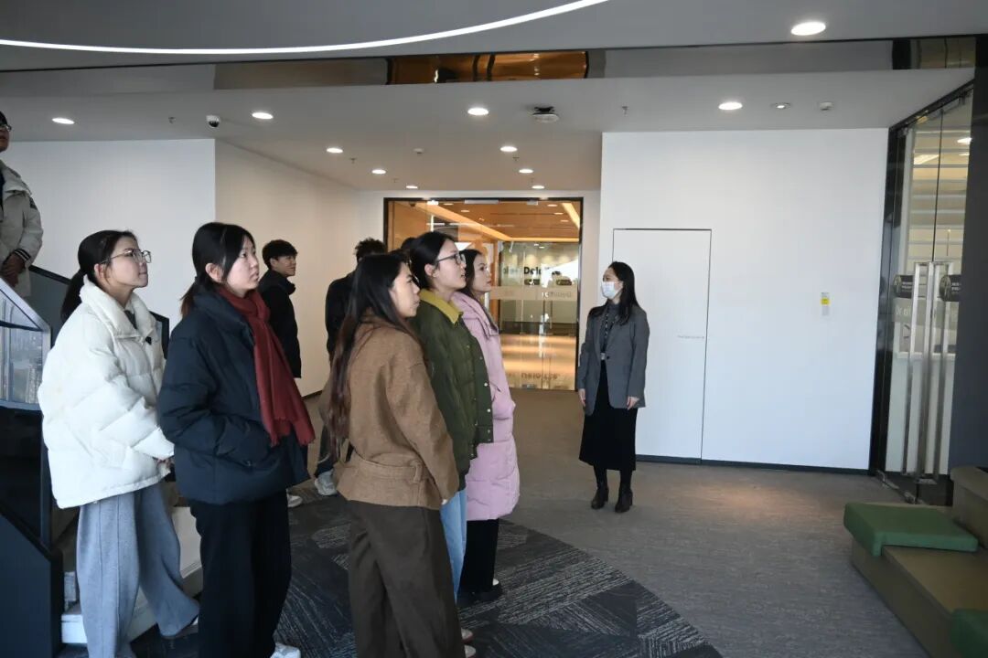 座谈结束后,同学们在人力资源部高级专员李璇的带领下,对德勤的办公环境进行参观。开放式办公空间里,灵活流动的无固定工位设置,直观展现了审计行业高效协同、快节奏的工作特质,让同学们真切感受到专业服务机构的职场氛围;同时,德勤贴心配备的母婴室、可加热食堂等人性化设施,更让大家感受到企业对员工的细致关怀。严谨专业的工作氛围与温暖包容的人文关怀相得益彰,让同学们对德勤的企业魅力有了更深刻的认知。