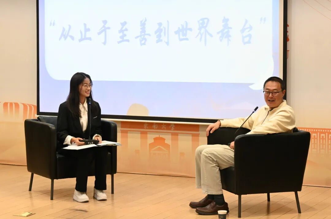 讲座后,活动进入“与叶茂教授对话:从止于至善到世界舞台”专访环节。围绕“东南记忆”“学术跨越”“选择与成长”“寄语东大”四大主题,叶教授逐一分享感悟。他回忆了东大求学期间对自己影响深远的课程与老师,解读了“止于至善”校训在学术研究中的实践体现,并用“起”“承”“转”“合”四个字概括了自己的东大青春时光。