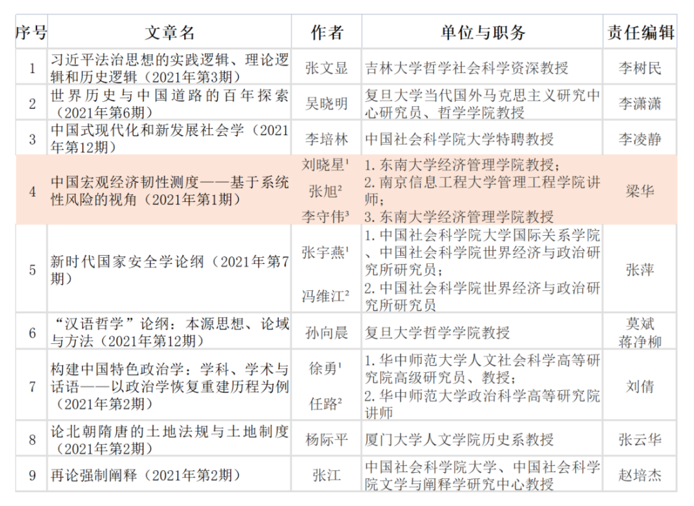 On March 16, 2022, the final evaluation meeting of experts of " Social Sciences in China" Good Articles of 2021 was held in Beijing. The team paper "Measurement of China's Macroeconomic Resilience - Based on the Perspective of Systemic Risk" by Professor Liu Xiaoxing and Li Shouwei from the School of Economics and Management of Southeast University was awarded the Good Article of "Social Sciences in China" of 2021.