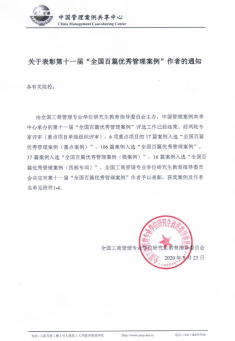 Congratulations to the case written by Professor Lv Hongjiang, Deputy Dean of the School of Economics Management, and his team, "The Management Control of Subsidiaries under Cross-border Mergers Acquisitions: TI's Bottleneck Breakthrough", and the case written by Assistant Professor Zhou Lulu, the Minister of the Case Center, and her team "Do It Properly or Do It Vainly: The Revolution Road of Huangshan Tourism Performance Management System", which won the 11th national "A Hundred Excellent Management National Cases" award.