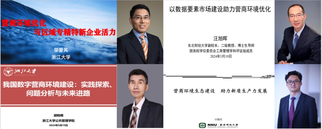 On the morning of May 19, Professor Wang Xuhui, Vice President of Northeast University of Finance and Economics, Professor Hu Shuigen from Zhejiang University, Professor Bai Junhong from Nanjing Normal University, Professor Niu Zhiwei from Zhejiang Gongshang University, and Professor Du Yunzhou from Southeast University respectively delivered insightful speeches on following topics: "Leveraging Data Element Market Construction to Promote Business Environment Optimization", "Building China's Digital Business Environment: Practical Exploration, Problem Analysis, and Future Directions", "Building a Business Environment Ecosystem to Support the Development of New Productive Forces", "Business Environment Optimization and Corporate Labor Productivity" and "Optimizing Business Environment to Promote Innovation Vitality: A Path for Coordinating New Productive Forces and Employment Priority through a Complex Mediation Approach".